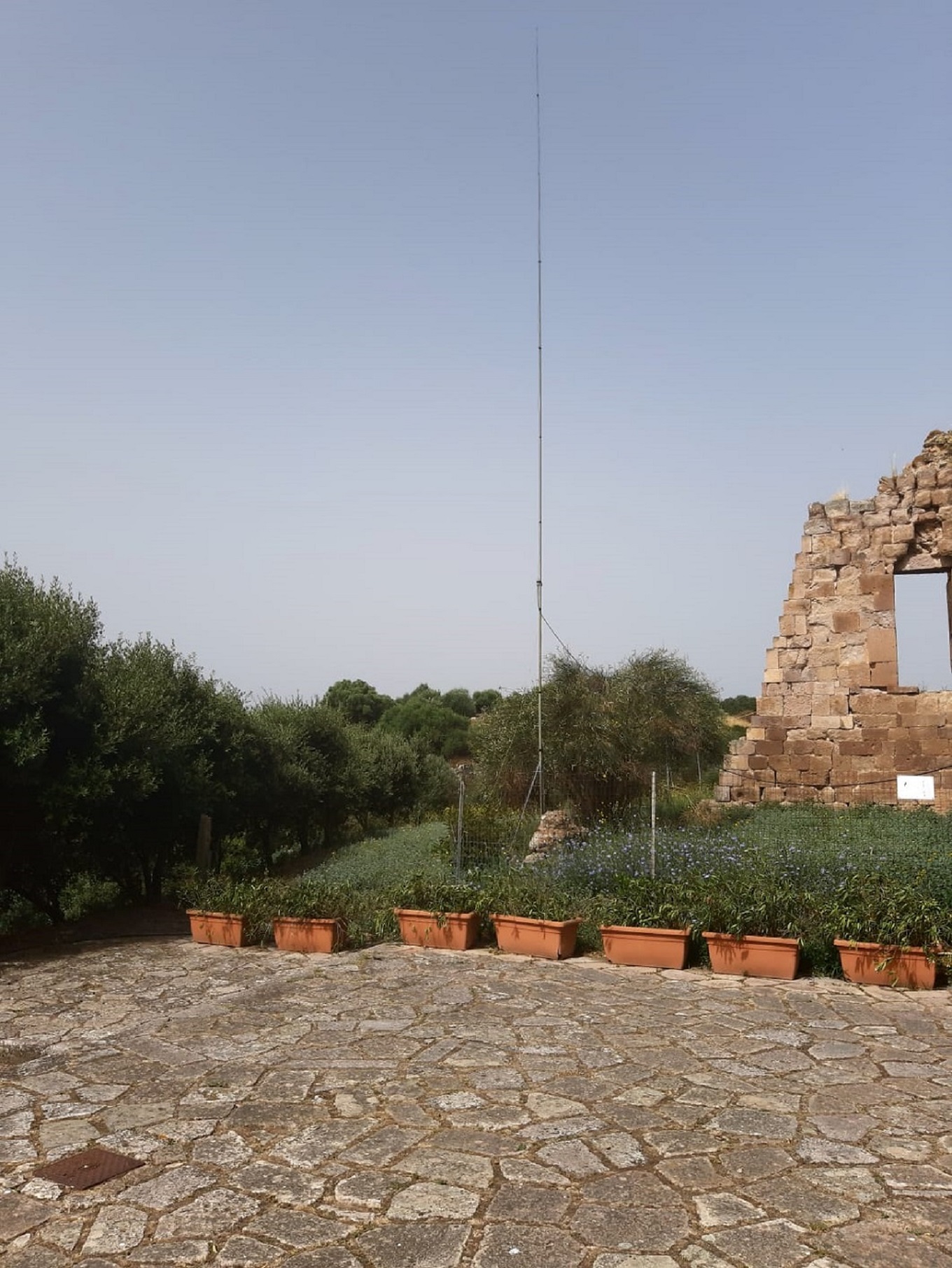 Il dipolo bibanda 40/20m Installato tra la vegetazione accanto l' abbazia