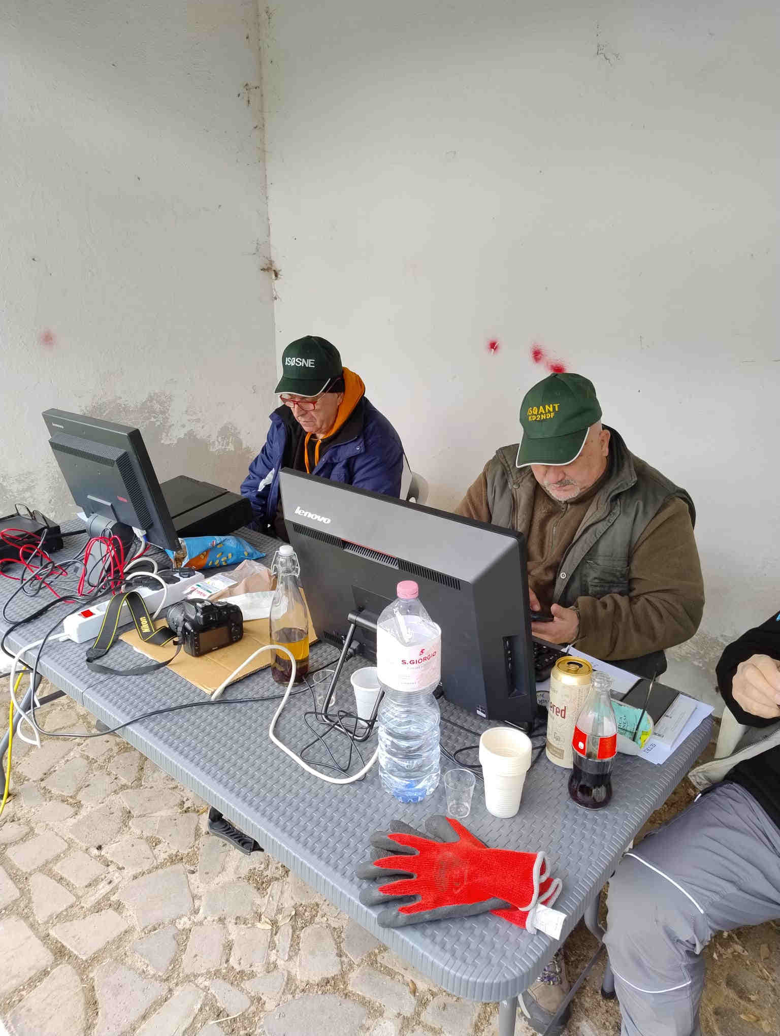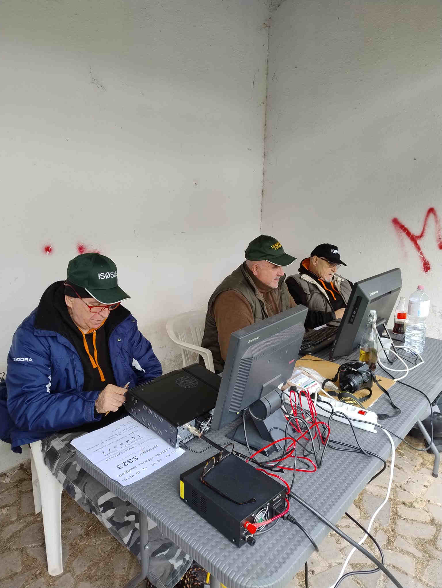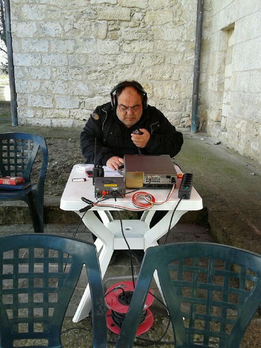 Viene assemblata la stazione radio ed alle 10:00 si è pronti per il primo CQ. Purtroppo il nuovo gruppo elettrogeno è una sorgente di distrurbi RF a larga banda con S9+20 su ogni frequenza.