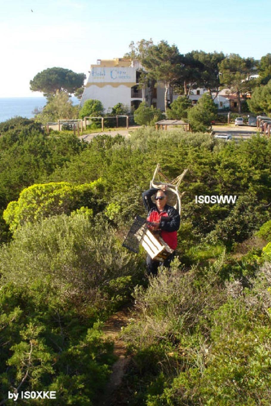Alle 11:13 dopo una bella faticata IQ0SS/P, dalla nuova postazione a circa 200m. dalla torre nel parcheggio antistante l'hotel Capo Caccia, inizia ad operare.